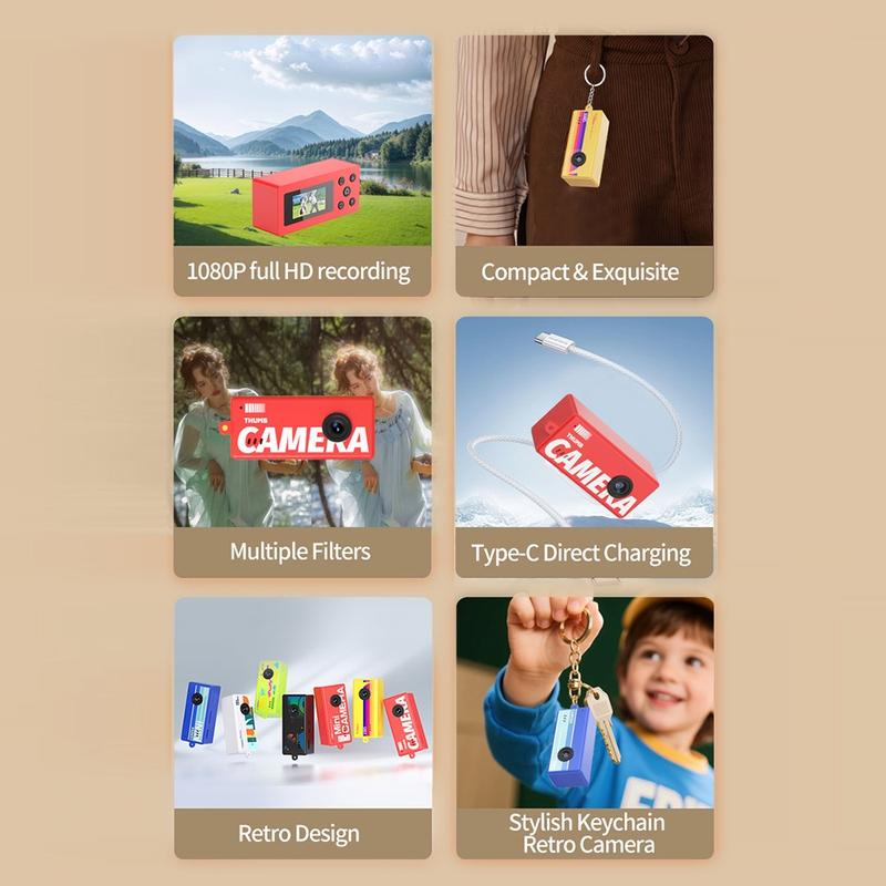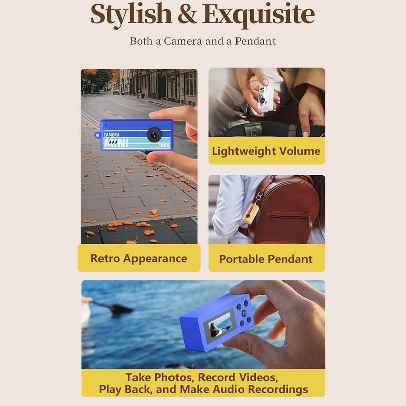 • Caméra miniature X7 Retro Mini - Caméra de poche Full HD 1080p avec écran IPS de 0,96 pouces, prise en charge des cartes TF, recharge via USB-C