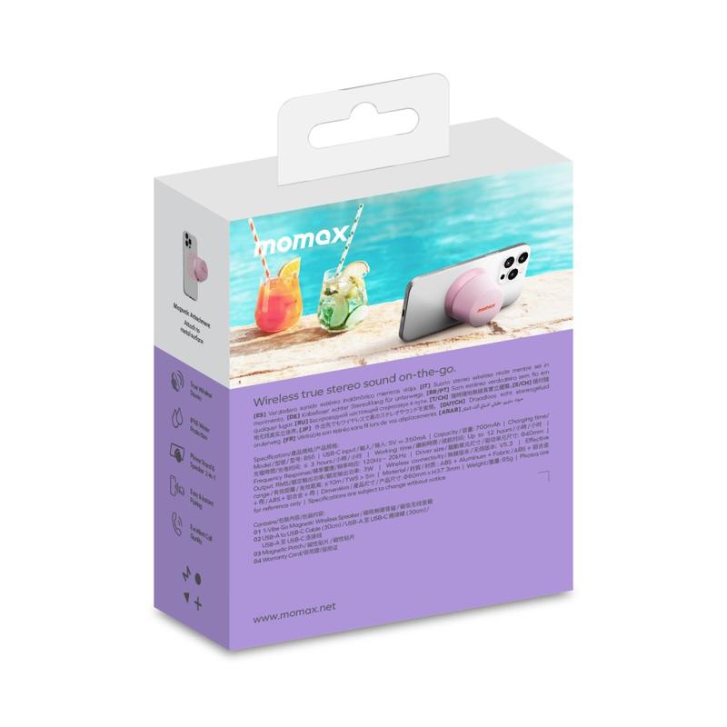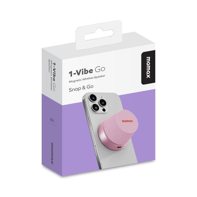 Mini haut-parleur Bluetooth magnétique et support pour téléphone Momax 1-Vibe Go BS6 - Rose