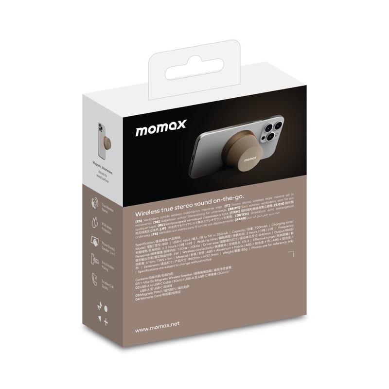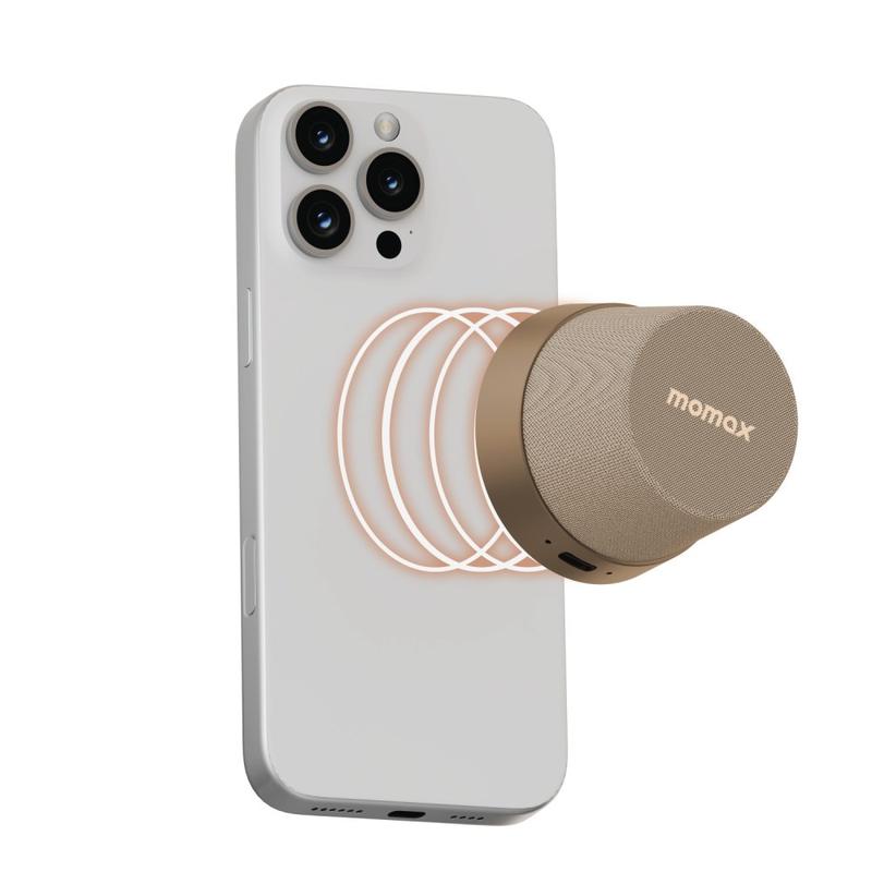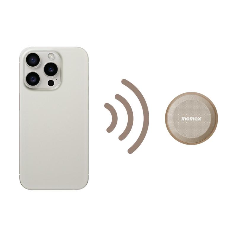 • Mini haut-parleur Bluetooth magnétique et support pour téléphone Momax 1-Vibe Go BS6, son à 360° et étanchéité IPX6
