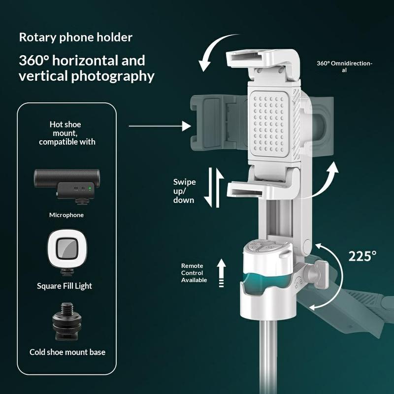 Le mini trépied selfie P15-Y combine un selfie stick, un trépied stable, une télécommande sans fil et une lampe d'appoint compacte en un seul accessoire léger. Conçu pour les créateurs en déplacement, il offre flexibilité et commodité pour la photographie, l'enregistrement vidéo et la diffusion en direct.