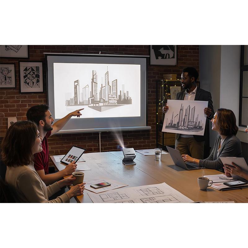 Emportez vos divertissements grand écran partout avec vous grâce au mini projecteur portable pliable en trois Aurzen ZIP. Fin, pliable et étonnamment puissant, il est conçu pour une expérience visuelle moderne, que ce soit pour regarder des films à la maison, organiser des projections en extérieur ou faire des présentations rapides lors de vos déplacements. La batterie intégrée de 5000 mAh offre jusqu'à 1,5 heure d'autonomie en mode Eco. Grâce à la prise en charge des batteries externes et à la recharge rapide PD (adaptateur 24 W ou supérieur requis), vous pouvez prolonger l'utilisation et continuer à regarder même pendant la recharge.