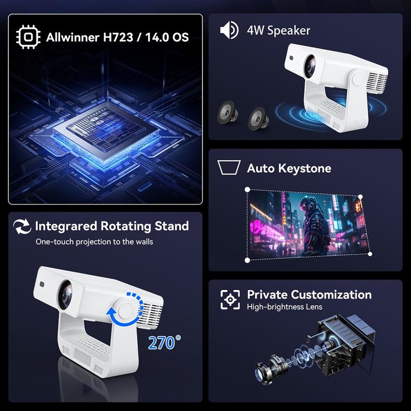 - Mini-projecteur portable équipé du système d'exploitation Android 14