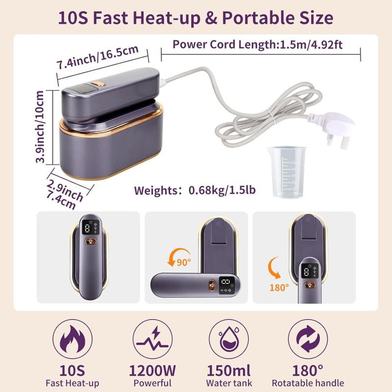 Mini défroisseur portatif pour vêtements avec affichage LED et vapeur à 3 niveaux - 1200W, prise EU, réservoir de 150 ml