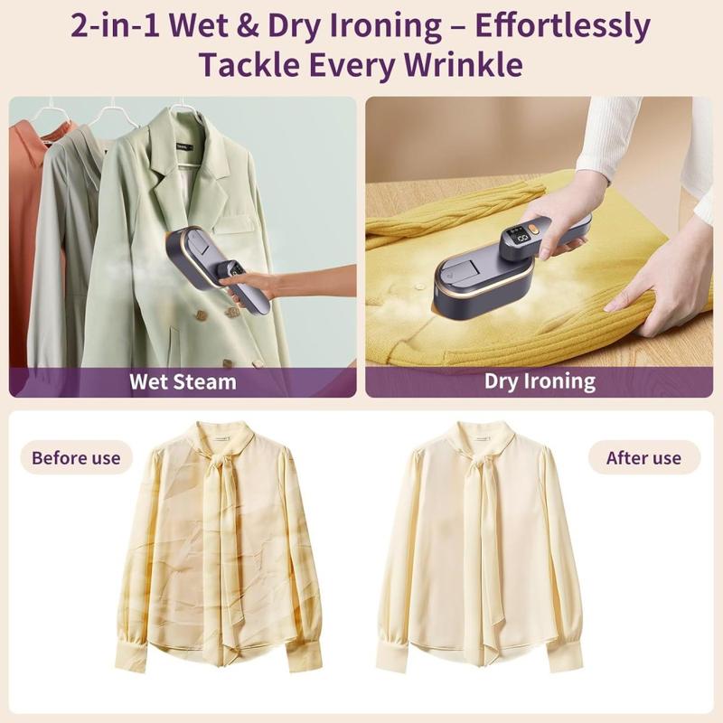 Au lieu de jongler avec des fers à repasser distincts pour le voyage et la maison, vous disposez d'un appareil léger qui s'adapte à chaque vêtement. L'affichage intelligent élimine toute incertitude, tandis que l'élément de 1 200 W permet de défroisser les plis les plus tenaces tout en ménageant les tissus délicats - idéal pour tous ceux qui privilégient la rapidité, la polyvalence et l'espace dans leur valise.