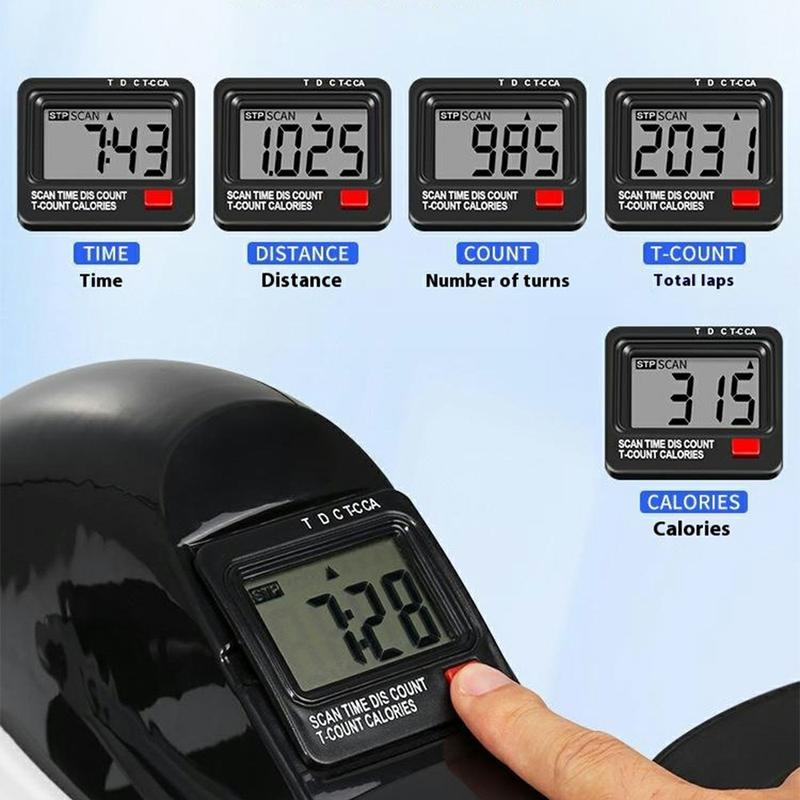 Équipé d'un écran LED clair, l'appareil affiche la durée, le nombre de répétitions et le nombre estimé de calories brûlées. Cela vous permet de suivre instantanément vos progrès et de maintenir des séances d'exercice saines et structurées.