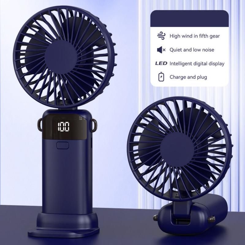 Mini-ventilateur portable pliable S1 avec écran LED - Ventilateur de bureau rechargeable à 5 vitesses avec port de recharge Type-C