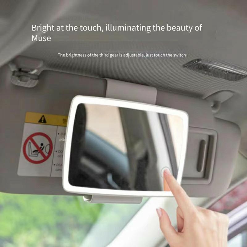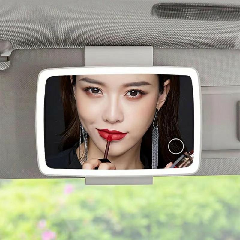 Miroir de maquillage LED rechargeable pour pare-soleil de voiture - Miroir de courtoisie éclairé, batterie 600mAh, 18,3 × 11,6 cm