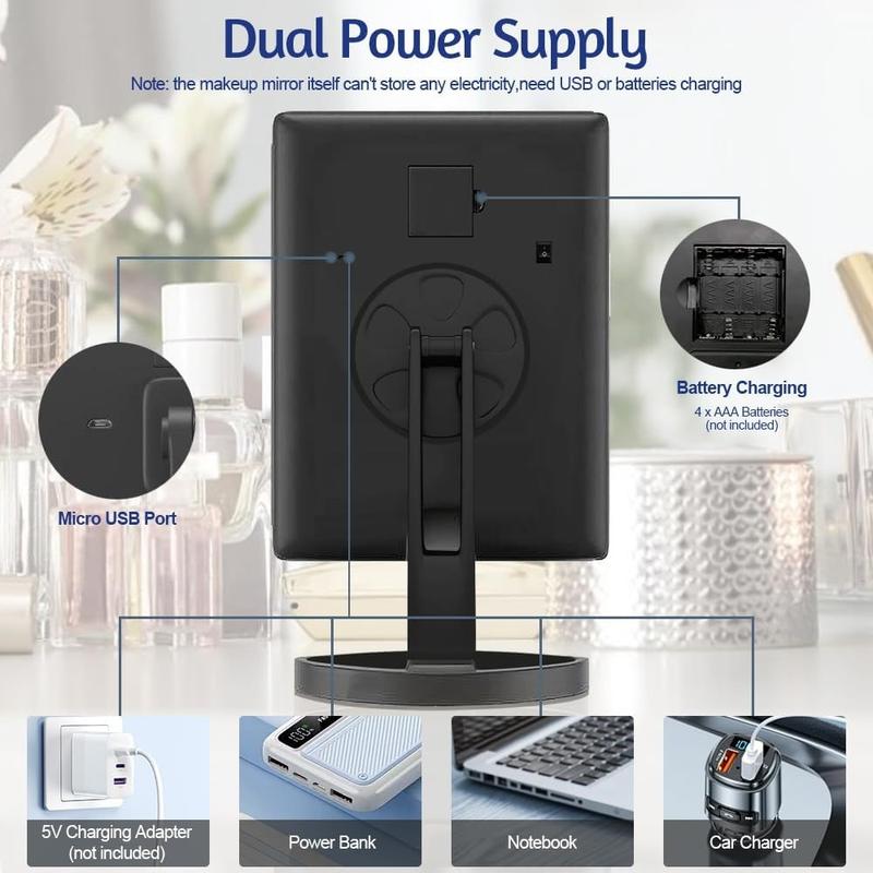 - Options de grossissement multiples - Comprend des panneaux de grossissement 1X, 2X et 3X ainsi qu'un miroir rond 10X détachable, vous permettant de vous concentrer sur les détails fins tels que l'eyeliner, les cils et la précision des soins de la peau.
