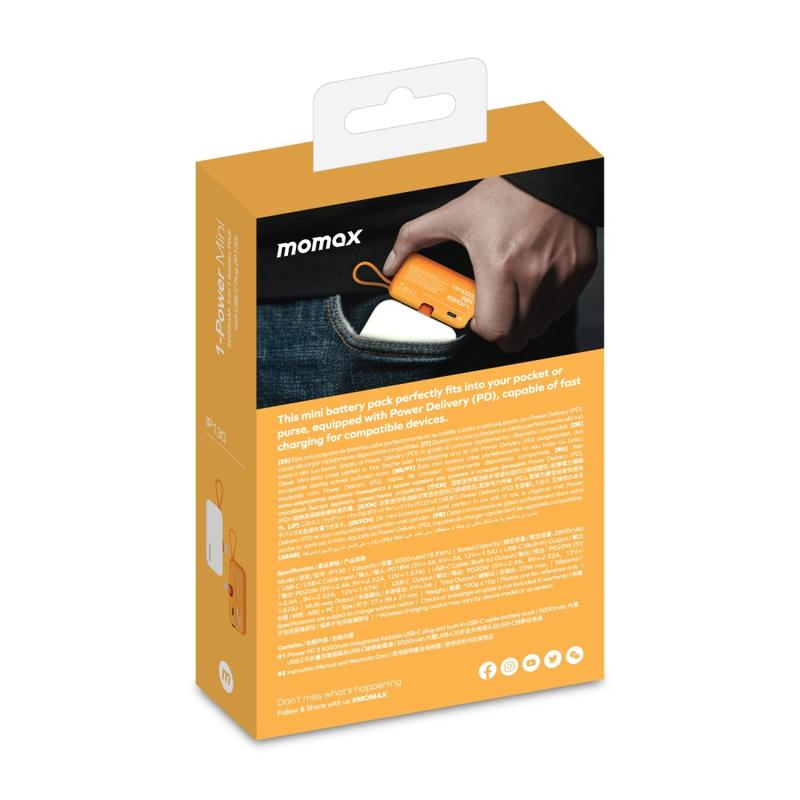 Apportez de la créativité et de la commodité à votre routine de charge en déplacement avec le chargeur portable MOMAX 1 Power Mini Pop Art. Doté d'une capacité de 5000mAh, d'un câble USB-C intégré et d'une charge rapide de 20W, ce banc d'alimentation compact fournit une alimentation rapide et fiable à plusieurs appareils, vous aidant à rester connecté à tout moment et en tout lieu.