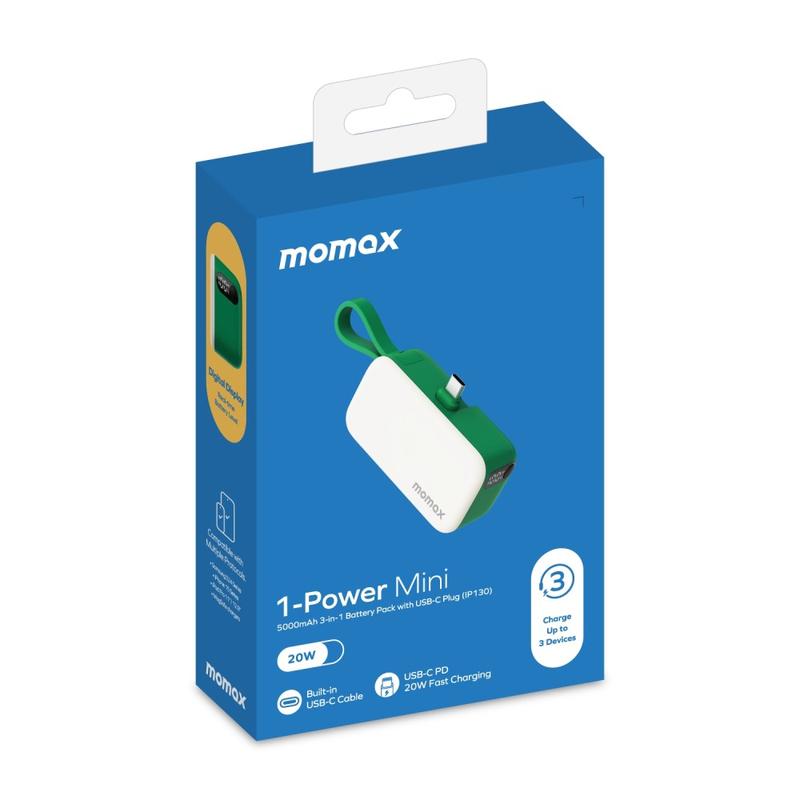Momax 1-Power Mini Pop Art USB-C Power Bank 5000mAh - Vert