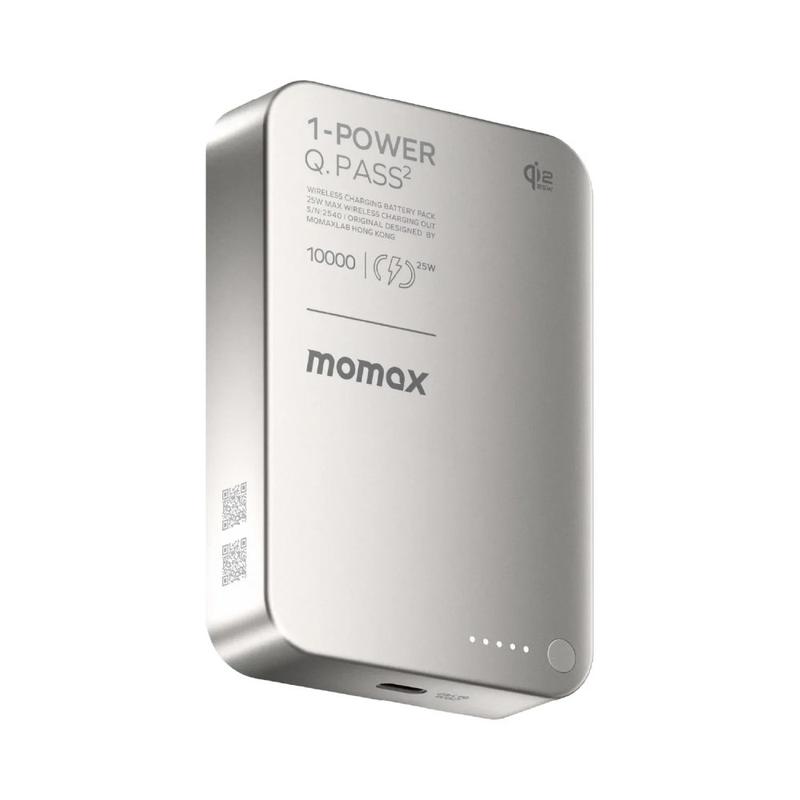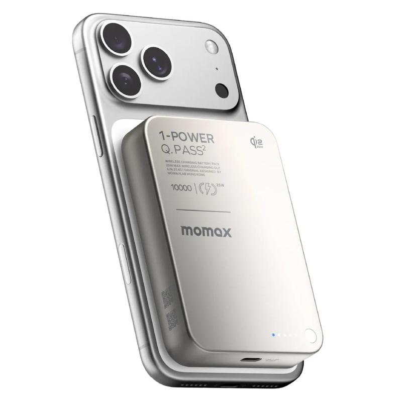 Momax 1-Power Q.Pass2 Qi2.2 25W Magnetic Wireless Power Bank 10000mAh - USB-C PD 30W, Snap-On Charging pour iPhone 12-17 Series