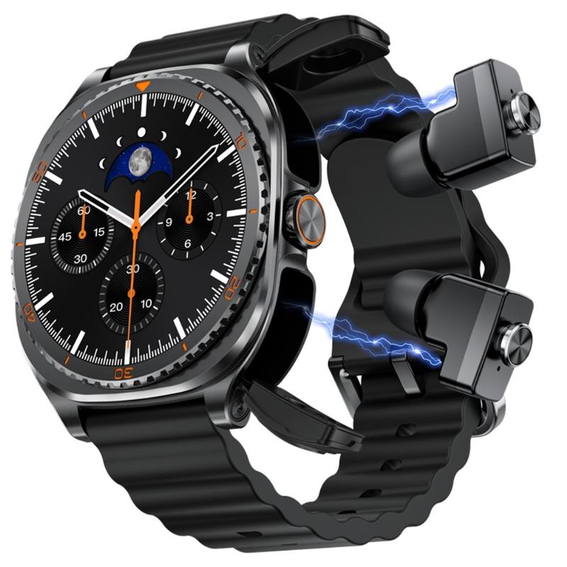 Profitez de la commodité d'une montre connectée et d'écouteurs sans fil dans un seul appareil intelligent au quotidien avec la GT99. Cette conception 2 en 1 combine une montre connectée fitness entièrement tactile avec des écouteurs TWS magnétiques intégrés, afin que vous puissiez suivre votre activité, consulter vos notifications et écouter de la musique sans avoir à transporter d'accessoires supplémentaires. Les écouteurs s'emboîtent parfaitement dans le boîtier de la montre pour le rangement et le chargement, ce qui fait de la GT99 un choix pratique pour les trajets quotidiens, les séances d'entraînement et l'utilisation quotidienne.