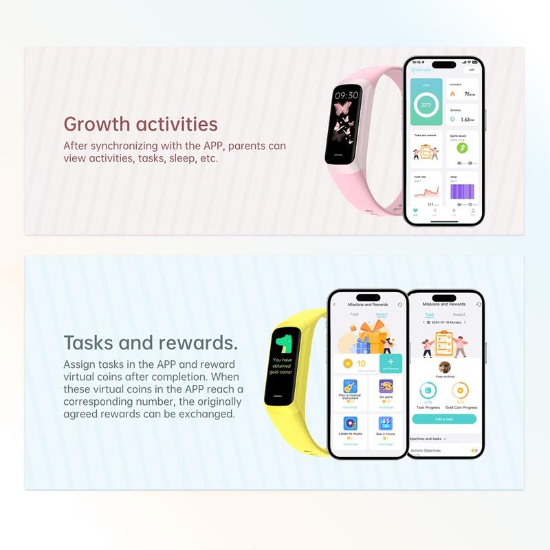 Aidez les enfants à acquérir des habitudes saines et à se responsabiliser, tandis que les parents restent informés grâce à une application de contrôle dédiée.