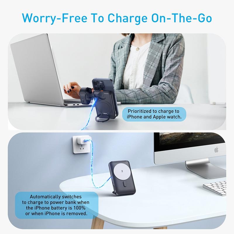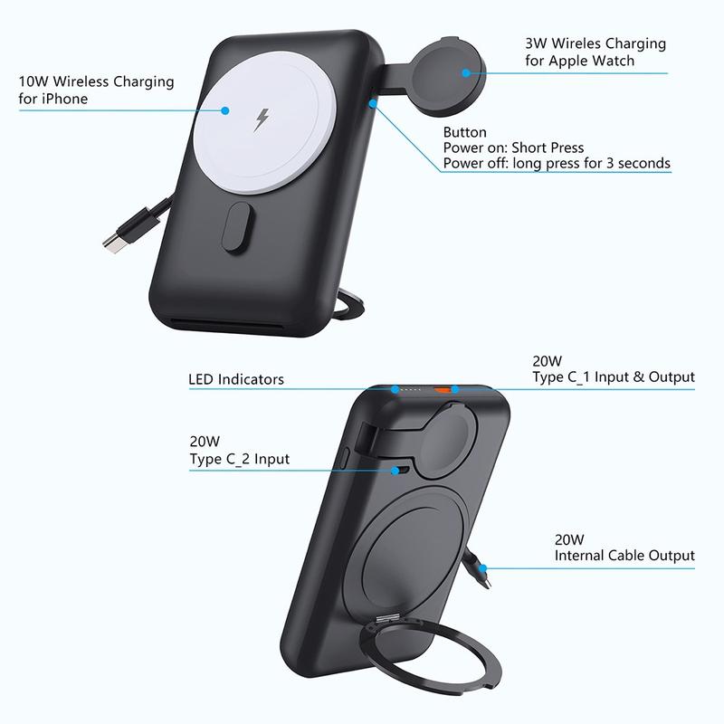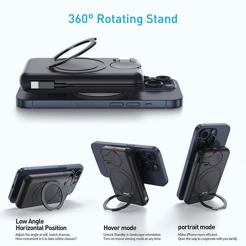 Il se distingue également par sa combinaison de portabilité et de fonctionnalité haut de gamme. La fonction de recharge magnétique simplifie le placement du téléphone, le câble intégré réduit l'encombrement et le support rotatif ajoute un niveau de praticité que de nombreuses batteries externes ordinaires n'offrent pas. Pour les utilisateurs à la recherche d'une solution de recharge portable plus polyvalente et plus raffinée, c'est un choix très judicieux.