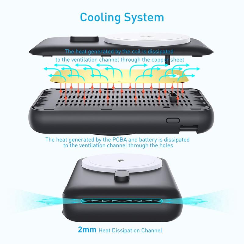 - Canaux de dissipation thermique de 2 mm et ouvertures de ventilation pour des performances de charge plus stables