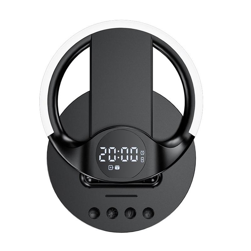 N01 Support de charge rapide magnétique 6-en-1 avec réveil, contrôle intelligent de la température et veilleuse - Noir