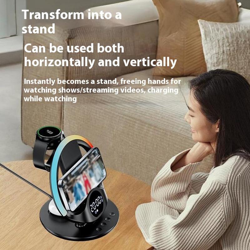 Chargez jusqu'à six appareils simultanément - votre smartphone, votre smartwatch et vos écouteurs - grâce à des points de charge dédiés et à une connexion magnétique solide qui garantit la stabilité et l'efficacité à chaque fois.