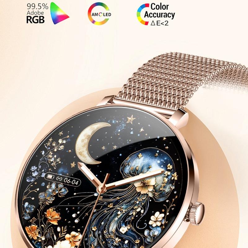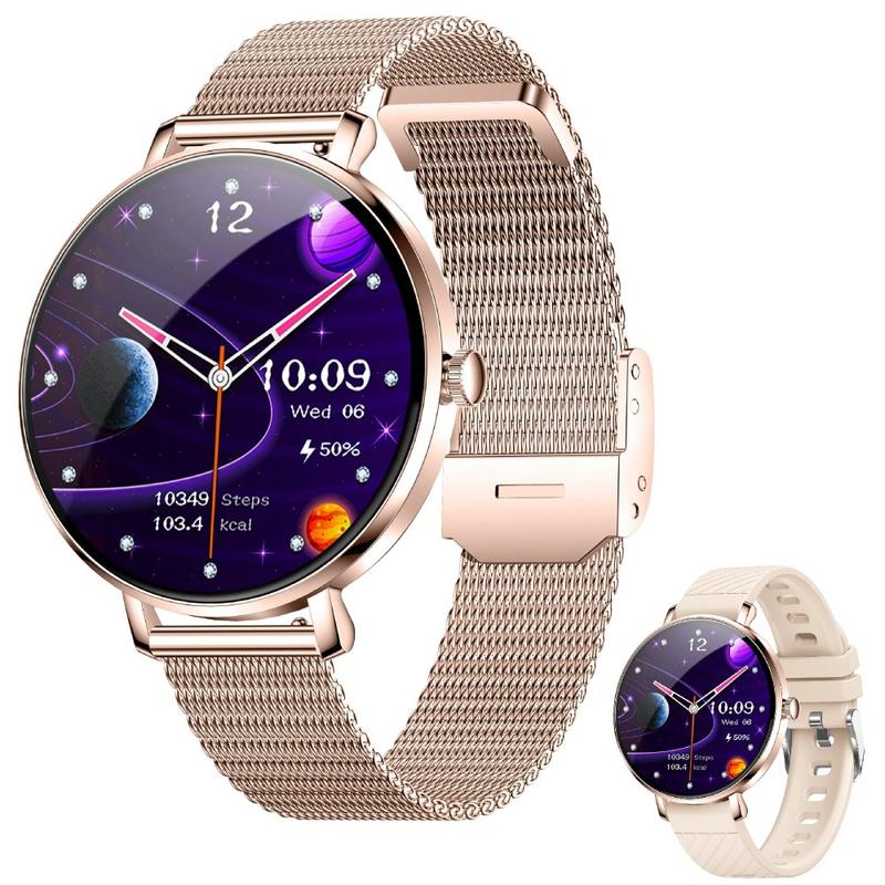 NX21 Montre intelligente pour femmes - Montre intelligente AMOLED pour le suivi de la santé avec Bluetooth 5.3, double bracelet et protection étanche IP68