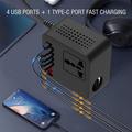 Onduleur de voiture à affichage numérique - Convertisseur 12V/24V DC en 110V/220V AC avec USB-C, USB-A et prise AC 150W