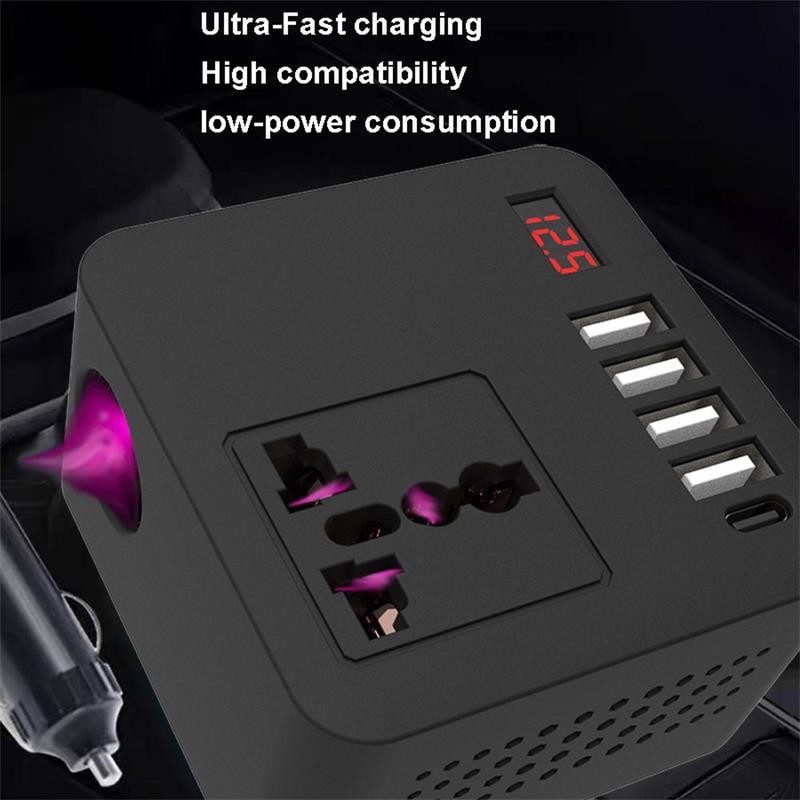 L'onduleur de voiture à affichage numérique offre une charge rapide pour plusieurs appareils, un refroidissement intelligent et une garantie de sécurité dans un format compact. Que vous fassiez la navette ou du camping hors réseau, c'est votre station d'alimentation portable tout-en-un.