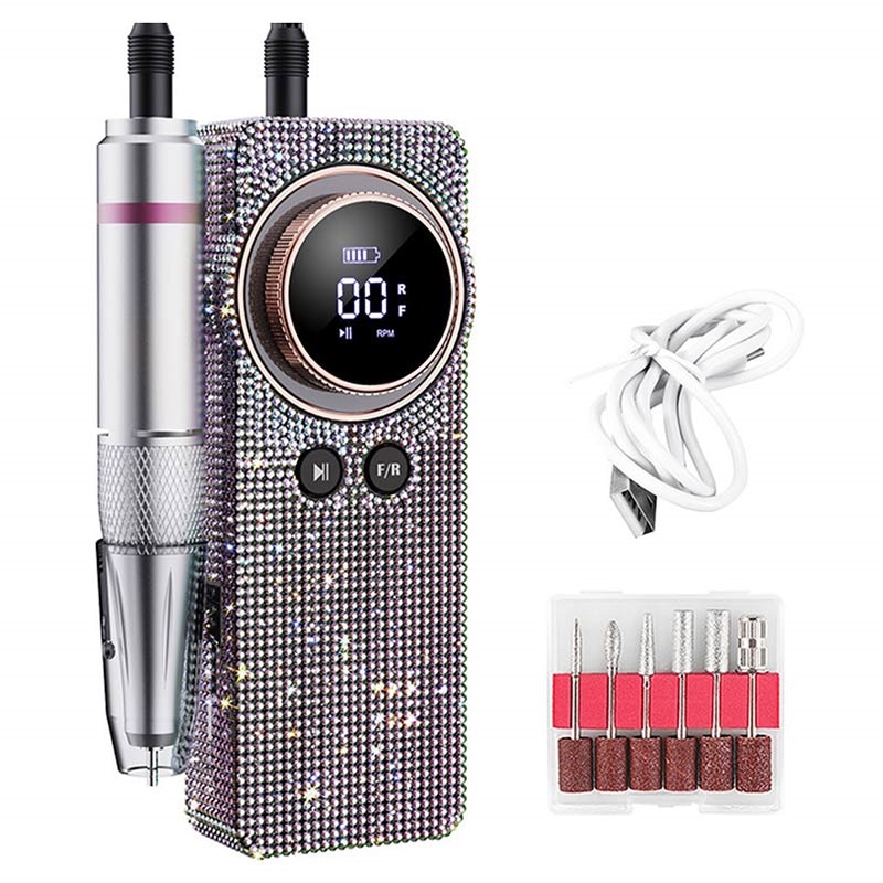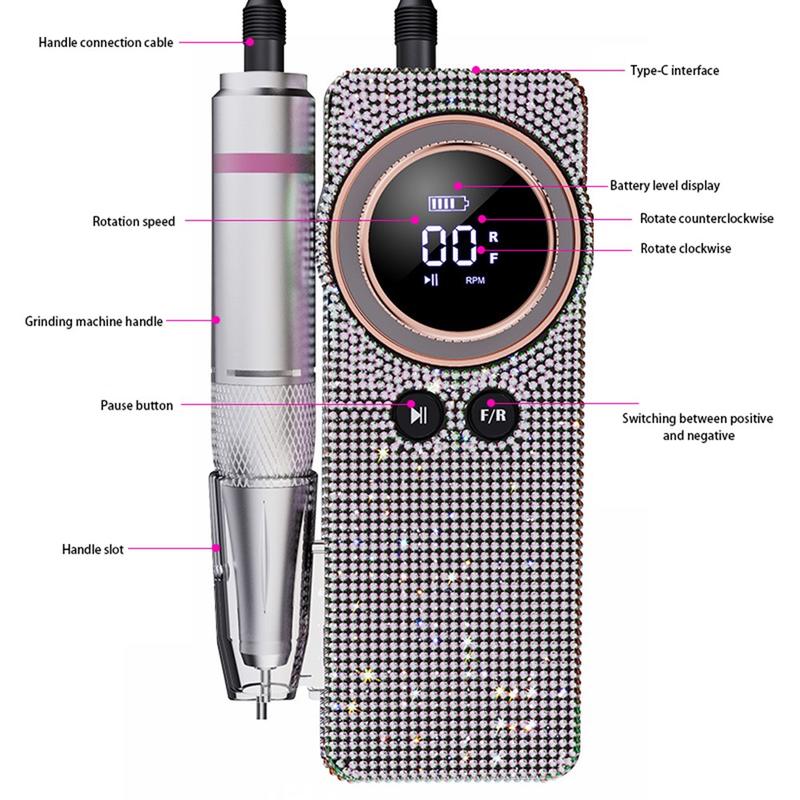 BLUEQUE BQ-108 - Perceuse électrique pour ongles au design diamant, pour gel et acrylique - Lime à ongles rechargeable de 35 000 tr/min avec écran LCD