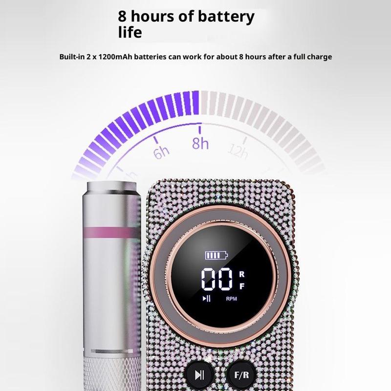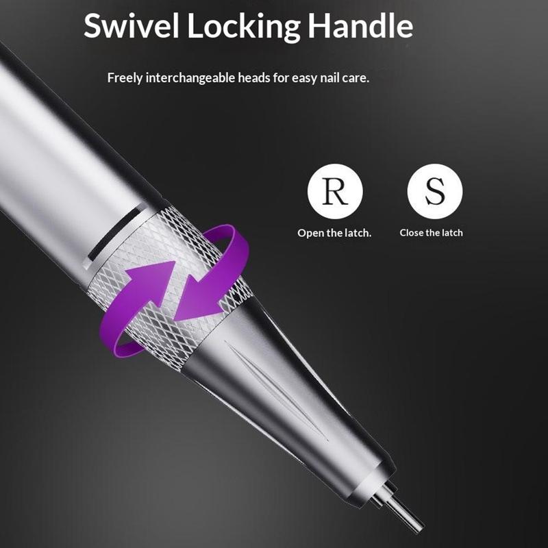 Dotée d'un moteur à grande vitesse pouvant atteindre 35 000 tr/min, elle offre un fonctionnement fluide et régulier pour la mise en forme, le limage, le polissage et les soins généraux des ongles. L'écran LCD permet de surveiller facilement la vitesse, le niveau de batterie, le sens de rotation et l'état de pause, tandis que la poignée à verrouillage rapide permet de changer facilement de foret sans outils supplémentaires. Sa batterie rechargeable offre jusqu'à 8 heures d'autonomie, ce qui la rend pratique pour les longues séances à la maison, en salon ou en déplacement.