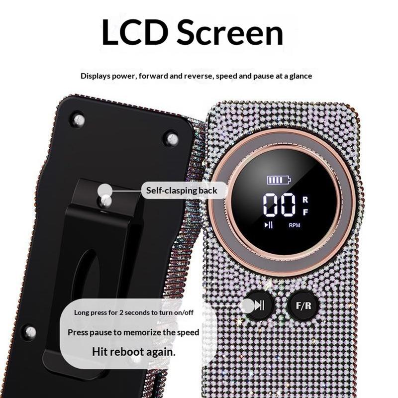 - Écran LCD indiquant la vitesse, le niveau de batterie, le sens de rotation et l'état de pause