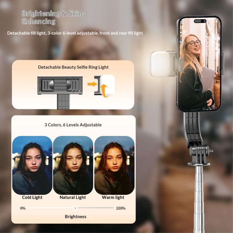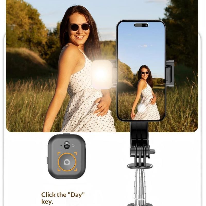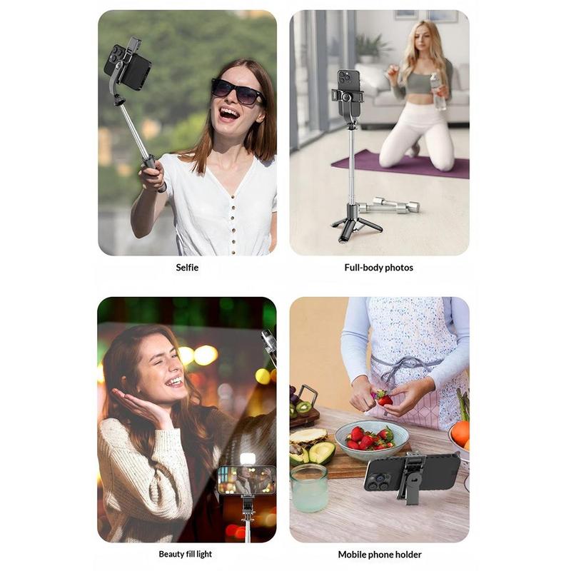 - Bâton de selfie, mini trépied et lampe de remplissage en un seul appareil.