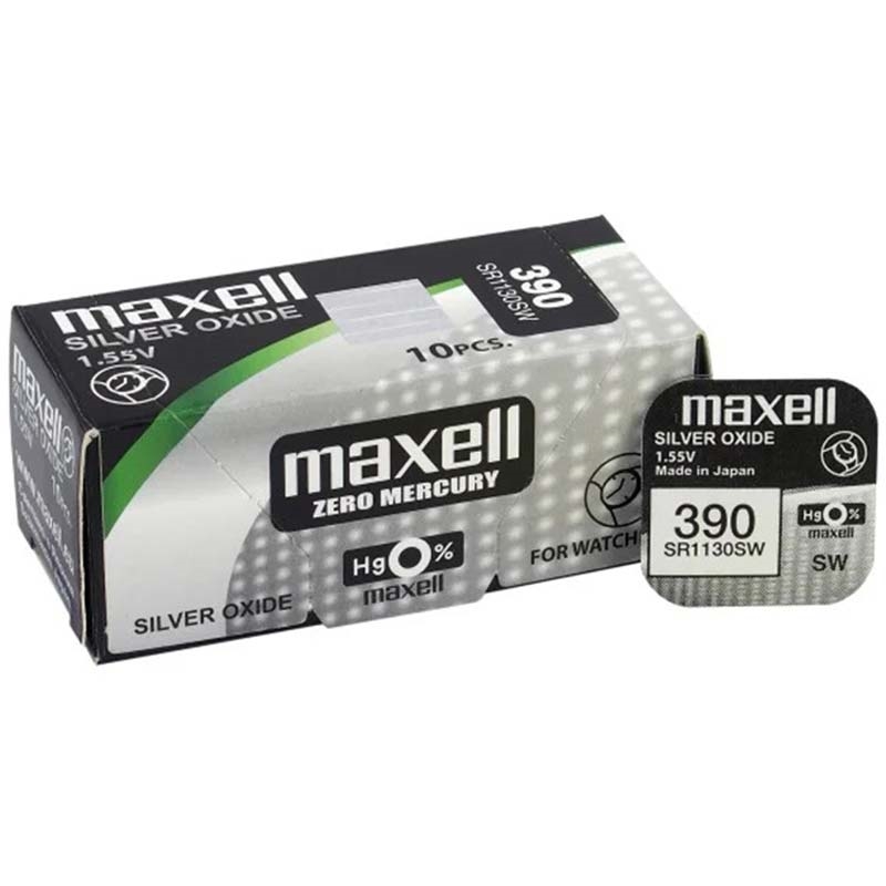 Pile d\'oxydes d\'argent Maxell 390/389 SR1130SW pour montre, 1.55V