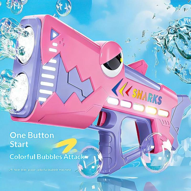 • Pistolet à bulles automatique pour enfants en forme de requin - Machine à bulles automatique à 24 trous avec lumières LED, pistolet à bulles rechargeable par USB