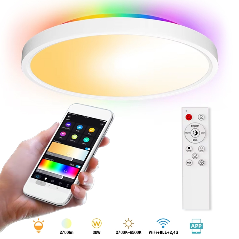 ZJ-WCLD-HC-RGB-CCT-S Plafonnier RGBCW 30W ultra-mince avec télécommande Smart WiFi et Bluetooth