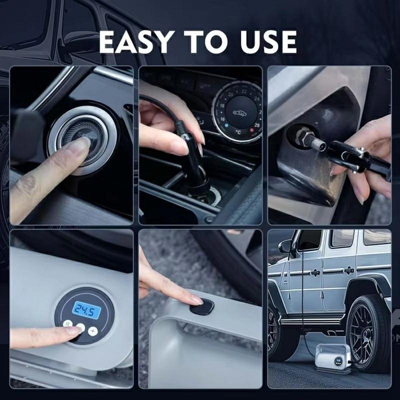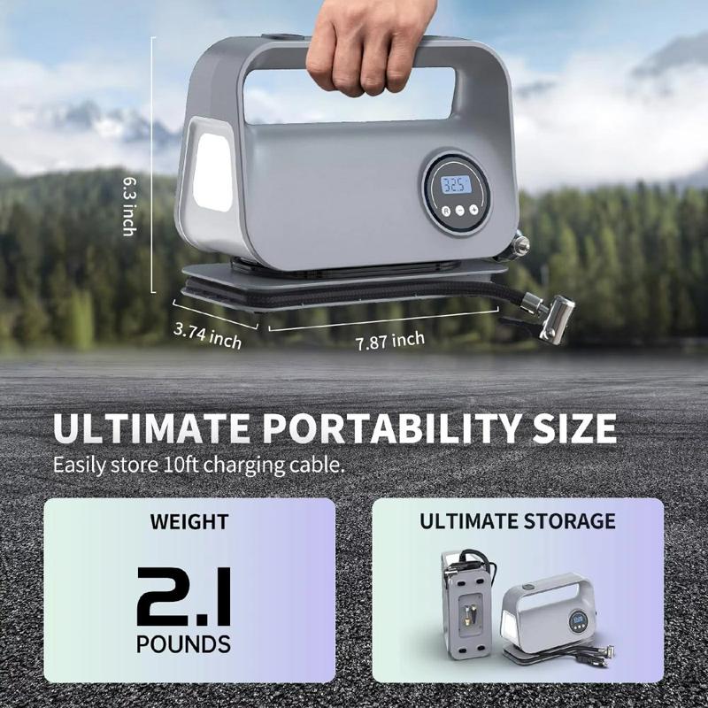 - Portable et léger - suffisamment compact pour être rangé dans la boîte à gants ou le coffre, mais assez puissant pour effectuer plusieurs tâches de gonflage.