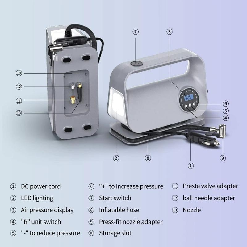 Soyez prêt à faire face à toutes les situations avec la pompe à air pour voiture 22 cylindres à affichage numérique - votre solution tout-en-un pour un gonflage précis et portable des pneus.