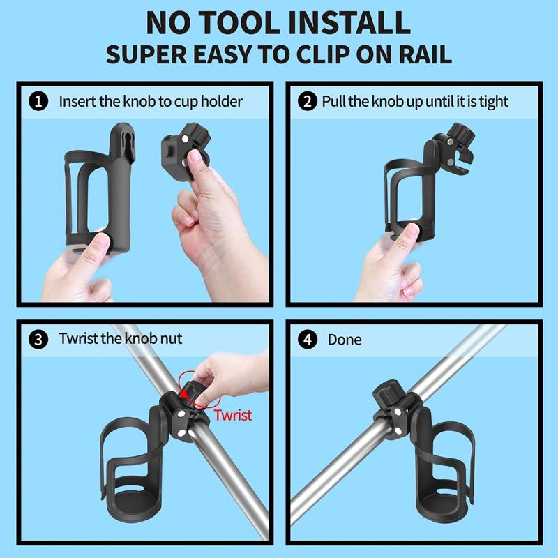 • Porte-bouteille rotatif à 360 degrés avec bouton de fixation rapide - Fixation universelle pour bouteilles jusqu'à 8 cm, convient aux tubes de 1,5 à 4,2 cm
