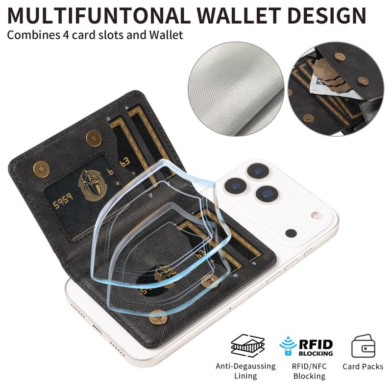 Porte-cartes MagSafe détachable / Portefeuille à blocage RFID avec 4 fentes pour cartes et fonction de support