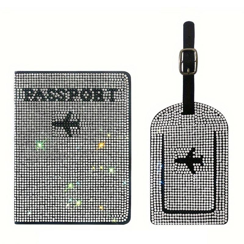 • Ensemble porte-passeport et étiquette à bagages en strass - Organisateur de voyage en polyuréthane scintillant