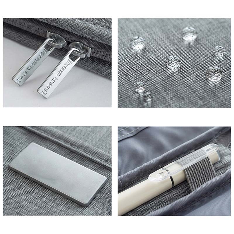 - Le tissu résistant à l'eau garde les documents essentiels au sec pendant les averses soudaines ou les boissons renversées.