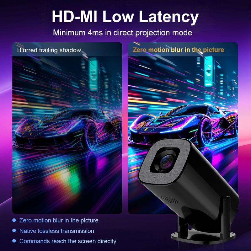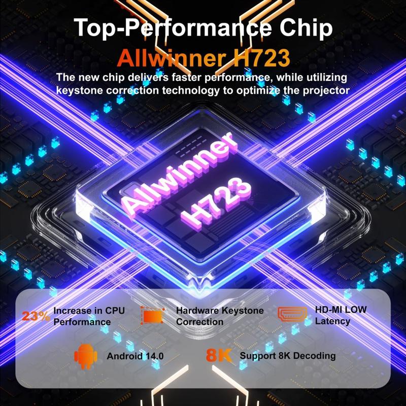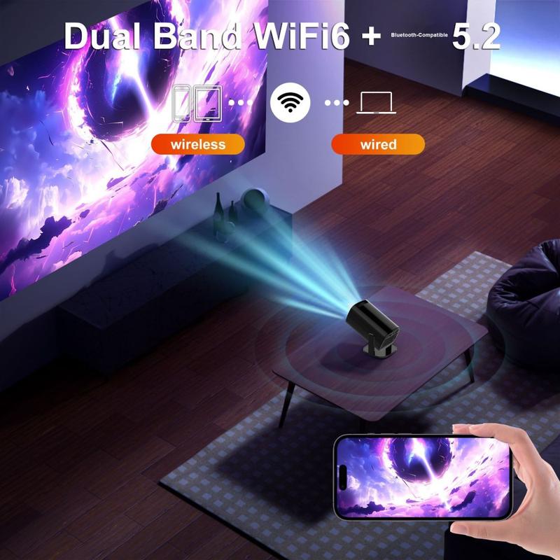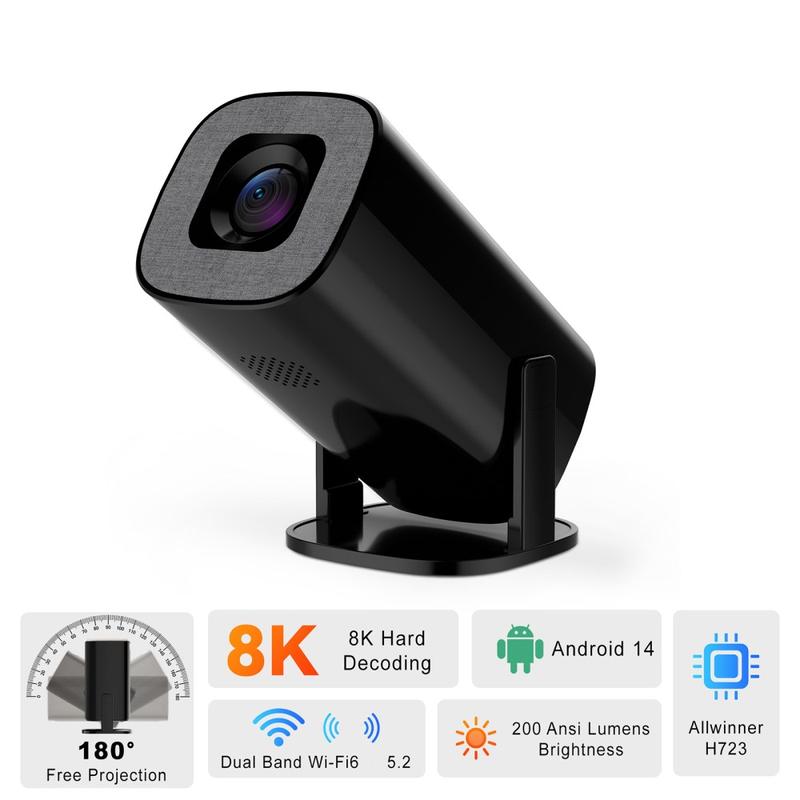 Projecteur portable Android 14 V1 (200 ANSI) - Résolution native 720p, correction automatique de la distorsion trapézoïdale, inclinaison à 180°, WiFi 6 double bande et Bluetooth 5.2, 1 Go/8 Go