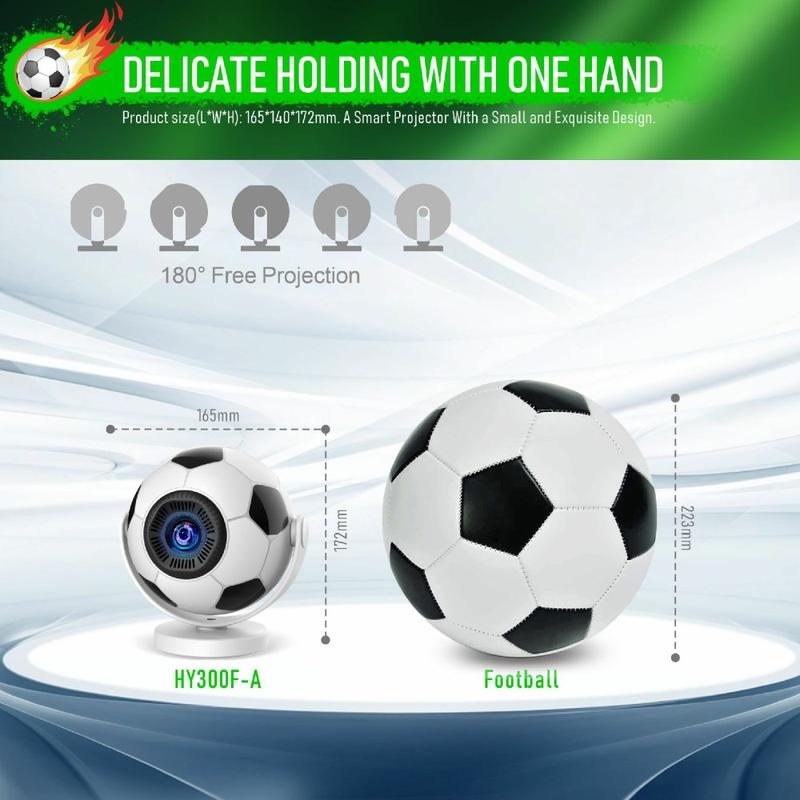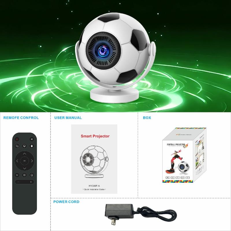 • Projecteur portable HY300F en forme de ballon de football - WiFi 6, Android 14, 170 lumens ANSI, projecteur home cinéma 720p - Prise européenne
