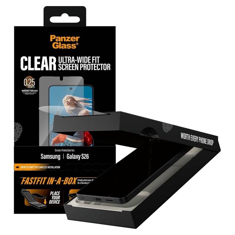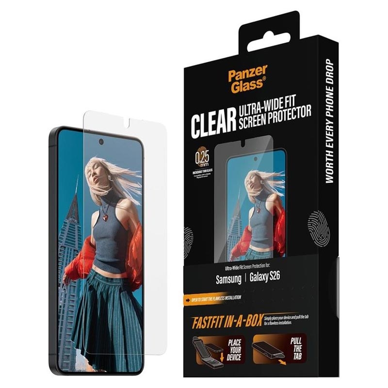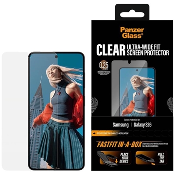 Protection d'écran en verre trempé PanzerGlass Ultra-Wide Fit avec FastFit In-A-Box pour Samsung Galaxy S26 - 9H