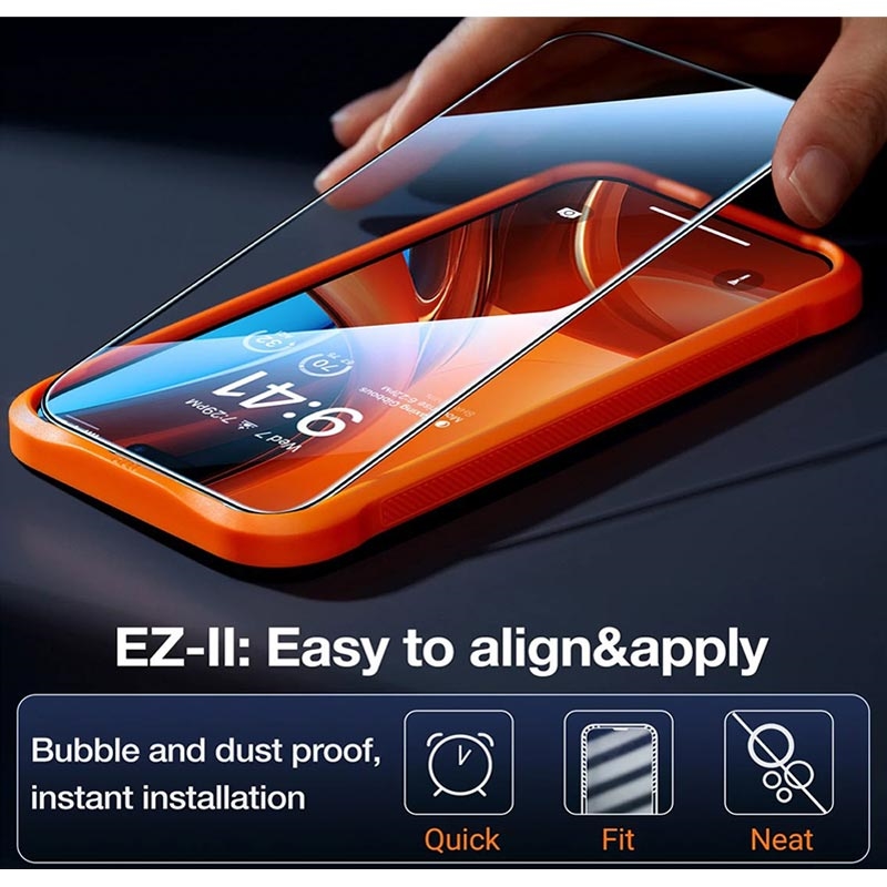 - Protection en verre trempé : Fabriqué en verre trempé durable pour protéger l'écran de votre iPhone 16 Plus des rayures, des chocs et de l'usure quotidienne. - Cadre à alignement automatique : Grâce à son cadre à alignement automatique facile à utiliser, l’installation est rapide et sans bulles, pour un ajustement parfait à chaque fois.