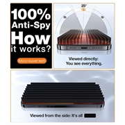 - Technologie anti-espionnage : Bloque les vues latérales, garantissant que votre écran reste visible uniquement pour vous et protégeant ainsi vos informations sensibles dans les lieux publics.