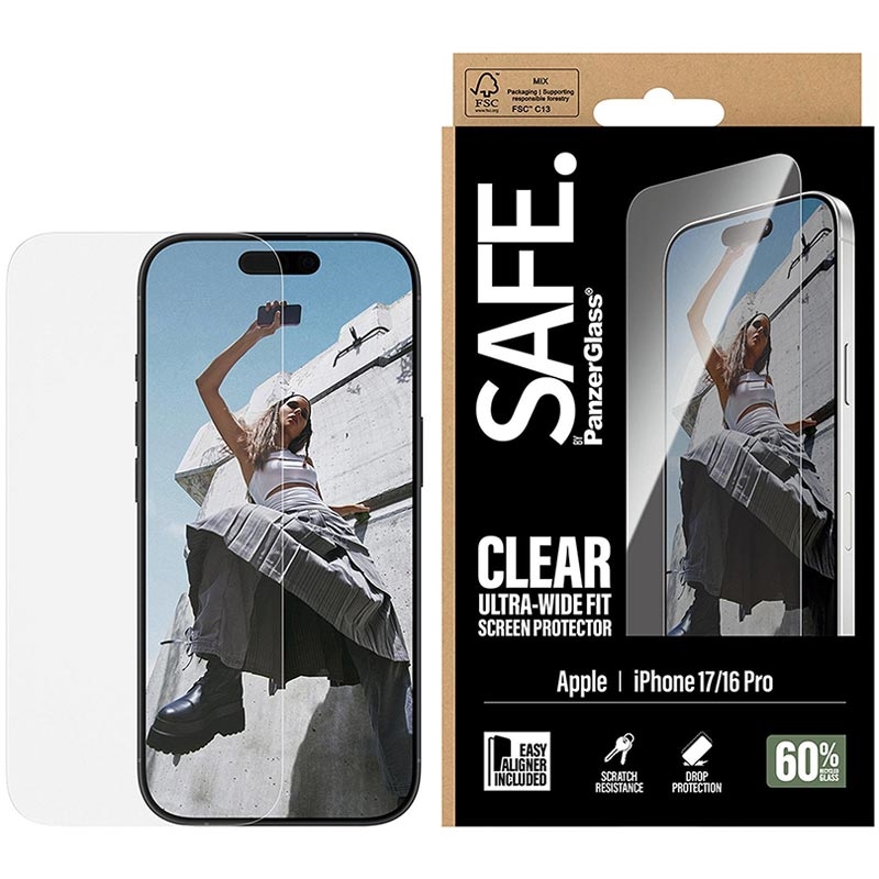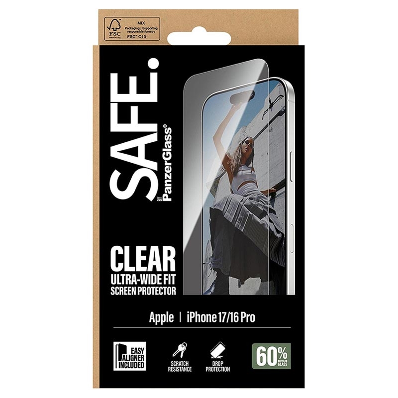 La protection d'écran SAFE. by PanzerGlass pour iPhone 17, iPhone 16 Pro offre une protection supérieure avec 60 % de verre recyclé, protégeant votre appareil des chutes, des rayures et des chocs. Son ajustement ultra-large assure une couverture complète et une visibilité claire de l'écran, tandis que le revêtement résistant aux empreintes digitales permet de garder votre écran propre. Avec une sensibilité tactile de 100 % et une installation facile grâce à l'EasyAligner inclus, cette protection d'écran allie harmonieusement durabilité et fonctionnalité.