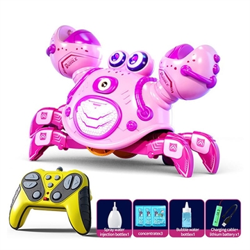 Q227 Robot crabe télécommandé pour enfants - Jouet RC 2,4 GHz à bulles et jet d'eau avec lumières LED, musique et rotation à 360°