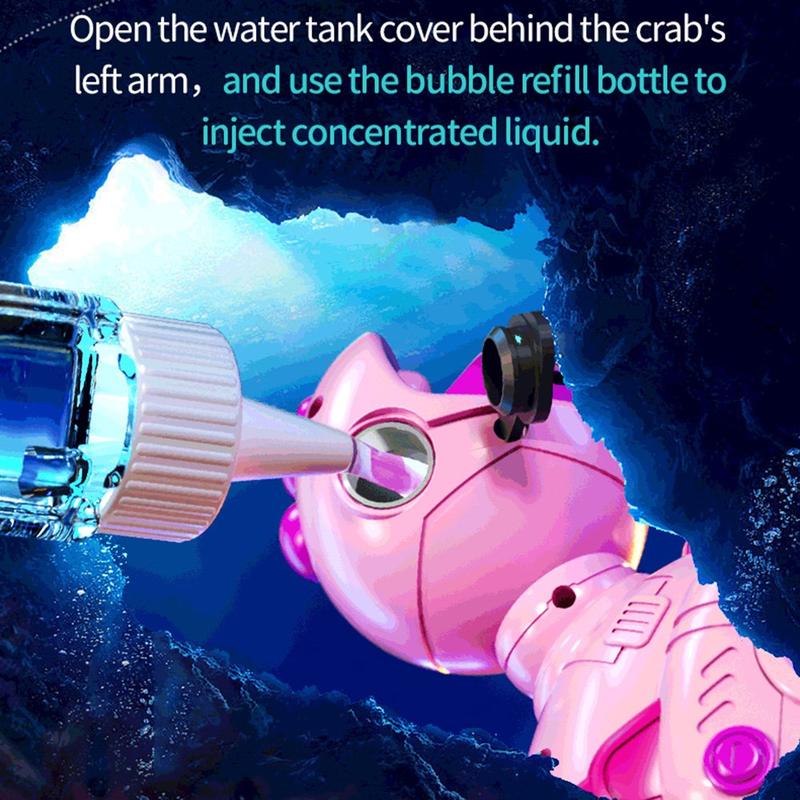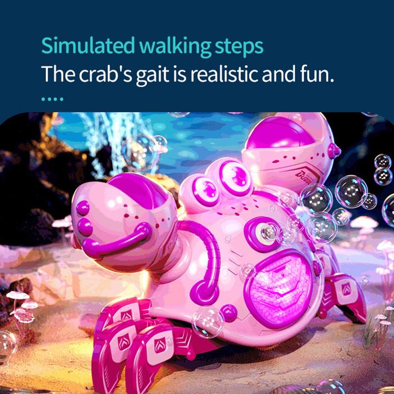 Grâce à la télécommande 2,4 GHz et à une portée allant jusqu'à 40 m, le crabe peut se déplacer, tourner, pulvériser de la brume et créer des bulles pour une expérience de jeu encore plus divertissante. Son corps en ABS résistant et ses bords arrondis le rendent pratique pour un usage quotidien, tandis que le mode démo automatique ajoute encore plus de plaisir.