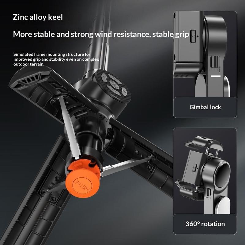Q34 AI : perche à selfie avec stabilisateur à cardan anti-tremblement et éclairage de beauté RGB - Noir