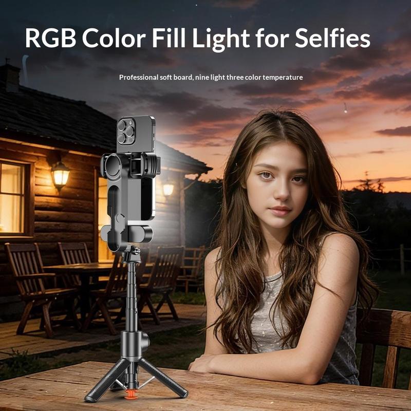 Créez des contenus mobiles plus stables et plus polyvalents grâce au stabilisateur à cardan anti-tremblement Q34 AI pour perche à selfie. Conçu pour le streaming en direct, les selfies, l'enregistrement vidéo, les appels vidéo et la création de contenu au quotidien, cet accessoire compact réunit un stabilisateur mono-axe, une perche à selfie extensible, un socle trépied, une lampe d'appoint RVB et une télécommande sans fil dans un format portable. Avec une plage d'extension allant de 16,8 cm à 71 cm, il vous offre plus de liberté pour ajuster le cadrage et la distance de prise de vue en fonction des différentes scènes.