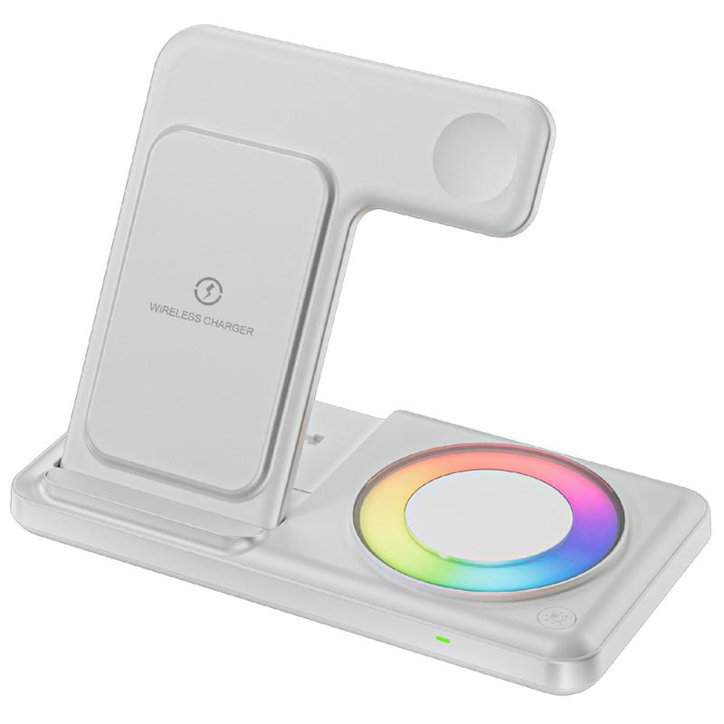 - Chargement sans fil 4 en 1 pour les téléphones, les écouteurs et les smartwatches.