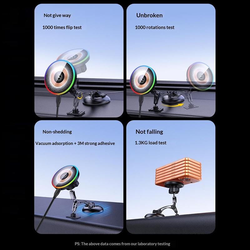 Le QH-AKD248 est conçu pour maintenir votre téléphone chargé, stable et bien visible pendant que vous conduisez. Il combine un support magnétique puissant avec une recharge sans fil de 15 W, ce qui vous permet de fixer votre téléphone rapidement tout en le rechargeant. La ventouse est conçue pour une fixation fiable sur le tableau de bord ou le pare-brise, vous offrant ainsi une installation plus épurée et plus pratique dans votre voiture.