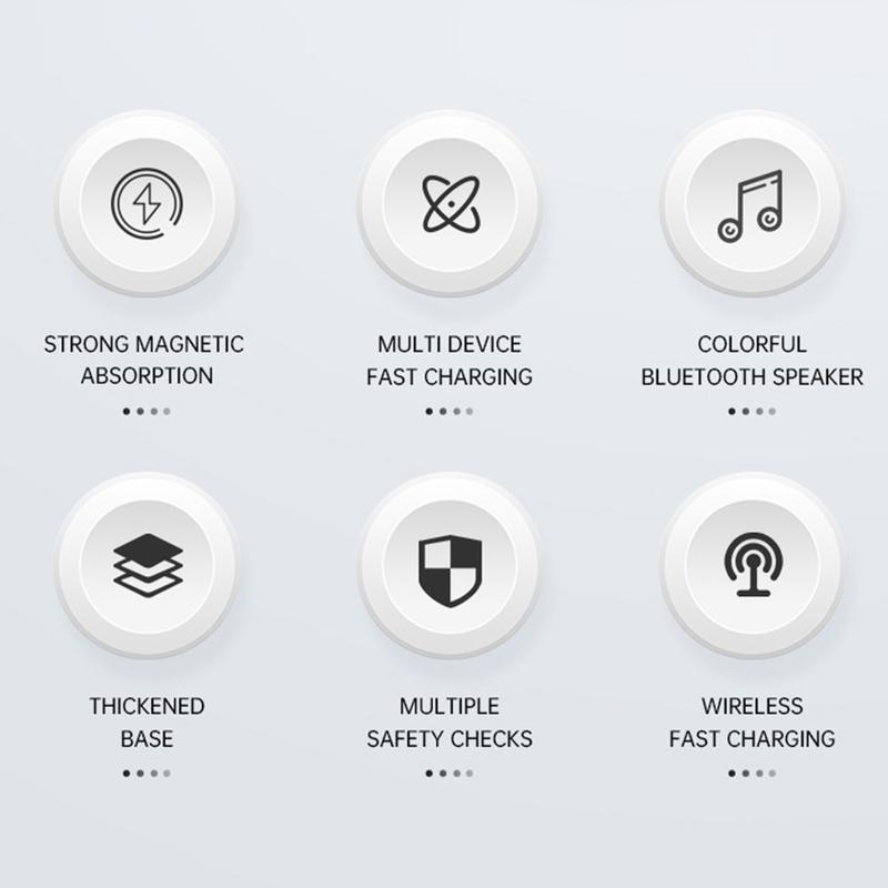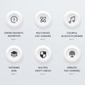 Le chargeur magnétique sans fil QI2.2 n'est pas seulement un chargeur, c'est une amélioration du style de vie. Profitez d'une charge rapide, d'une lumière ambiante et d'un son Bluetooth de qualité supérieure dans un hub unique et peu encombrant qui vous permet de conserver un espace de travail organisé et élégant.